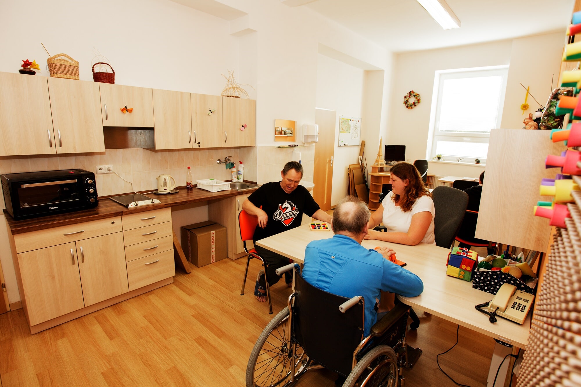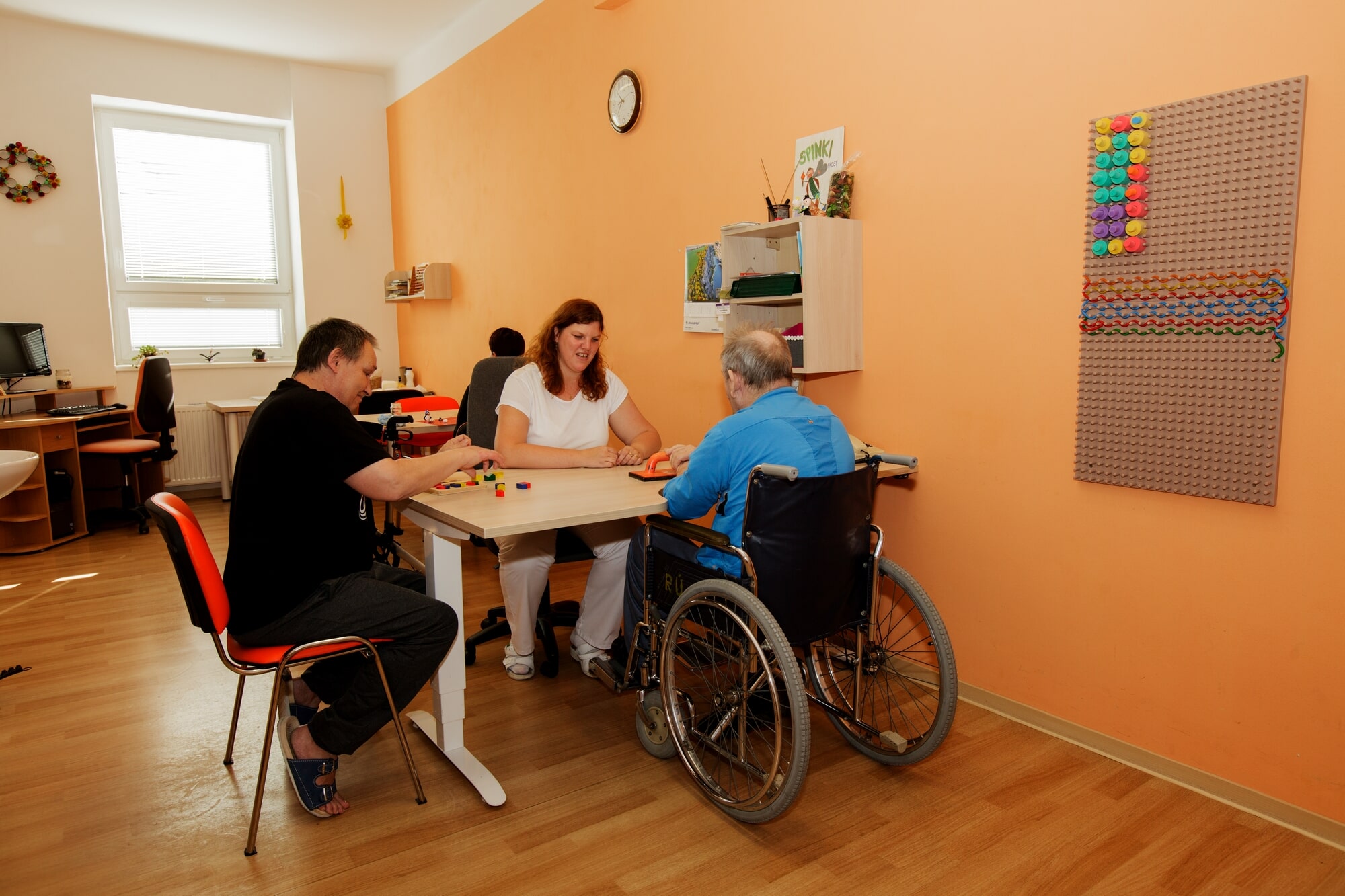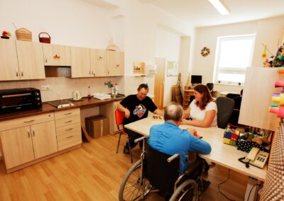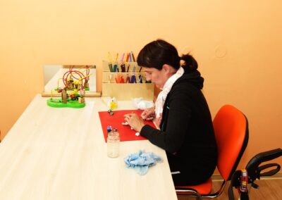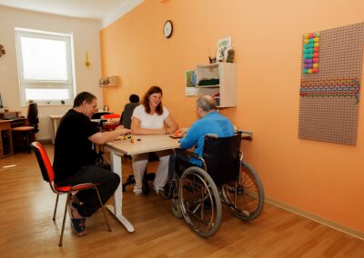 - Léčba zaměstnáváním (výroba drobných předmětů, šití na šicím stroji, společenské hry)