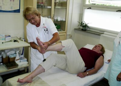 Dále následují příjmová vyšetření prováděná ve třech odbornostech. Pacient je nejprve vyšetřen neurologem, dále internistou a následně rehabilitačním lékařem. Tým těchto lékařů stanoví pro každého pacienta individuální rehabilitační, medikamentózní a ošetřovatelský program.
